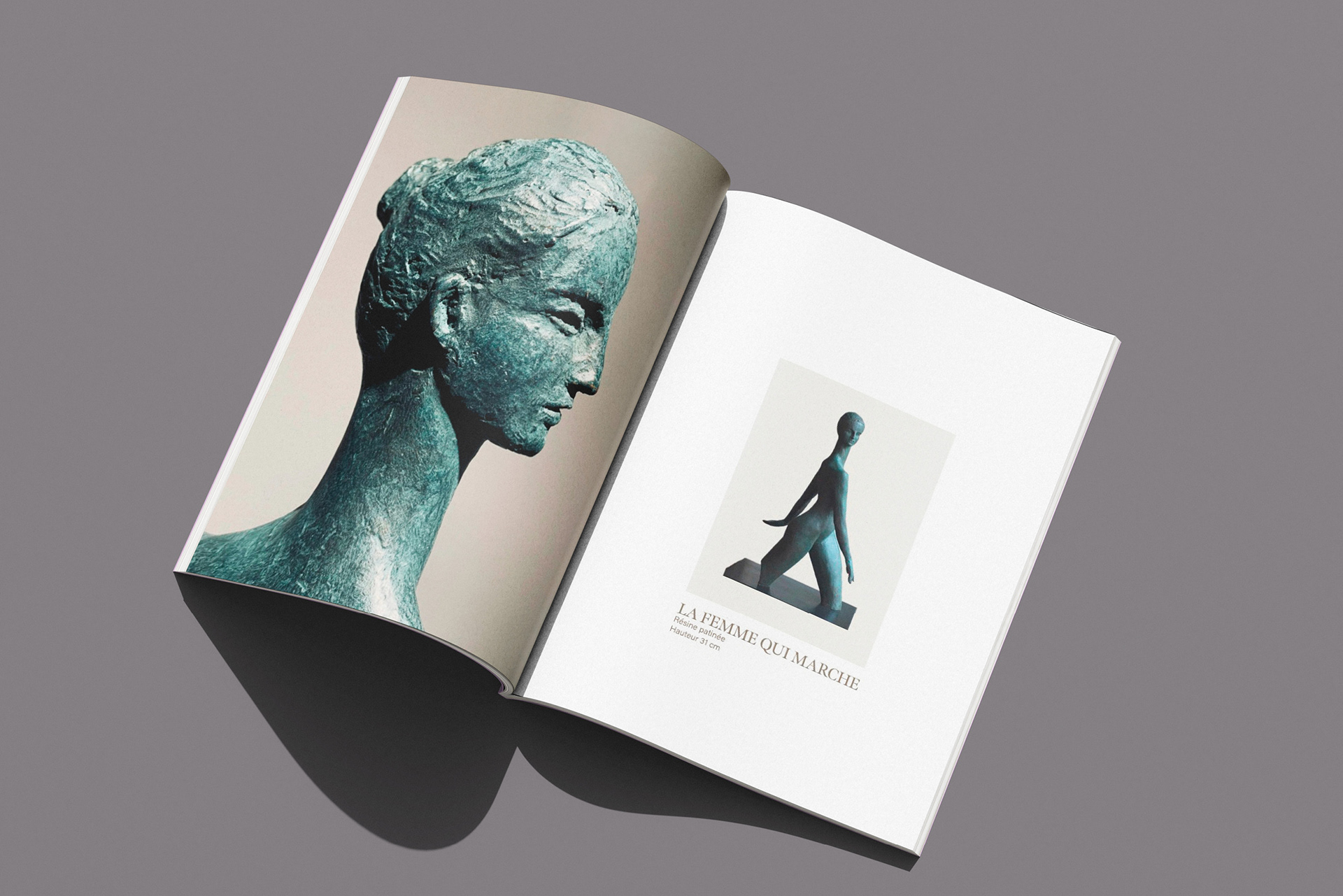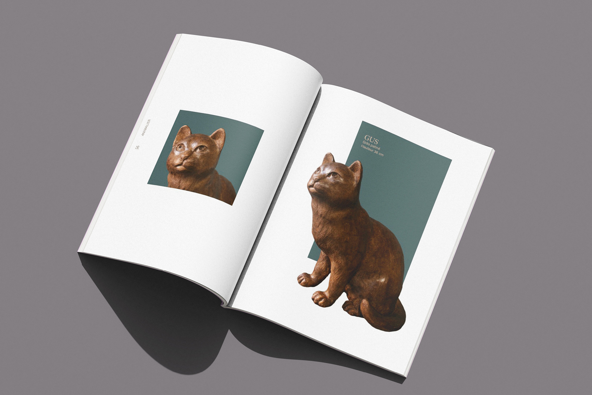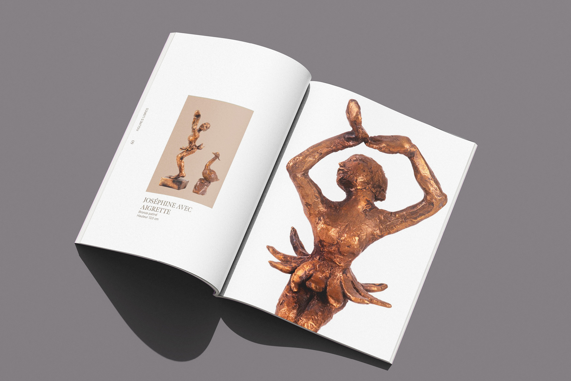 90 pages catalog, printed, sculptures photographs and layout.
